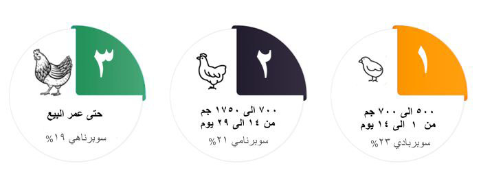 ( بادي بياض20 % ، نامي بياض 17% ، قبل الإنتاج "تحضيري" 18% ، إنتاجي 1 19% ، إنتاجي 2 18% ، إنتاجي 3 17%)